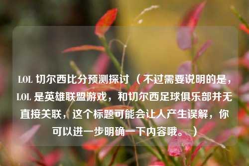 在电竞领域,LOL赛事一直备受瞩目,而当将目光聚焦到特定比赛如切尔西相关的赛事预测时,更是充满了话题性。